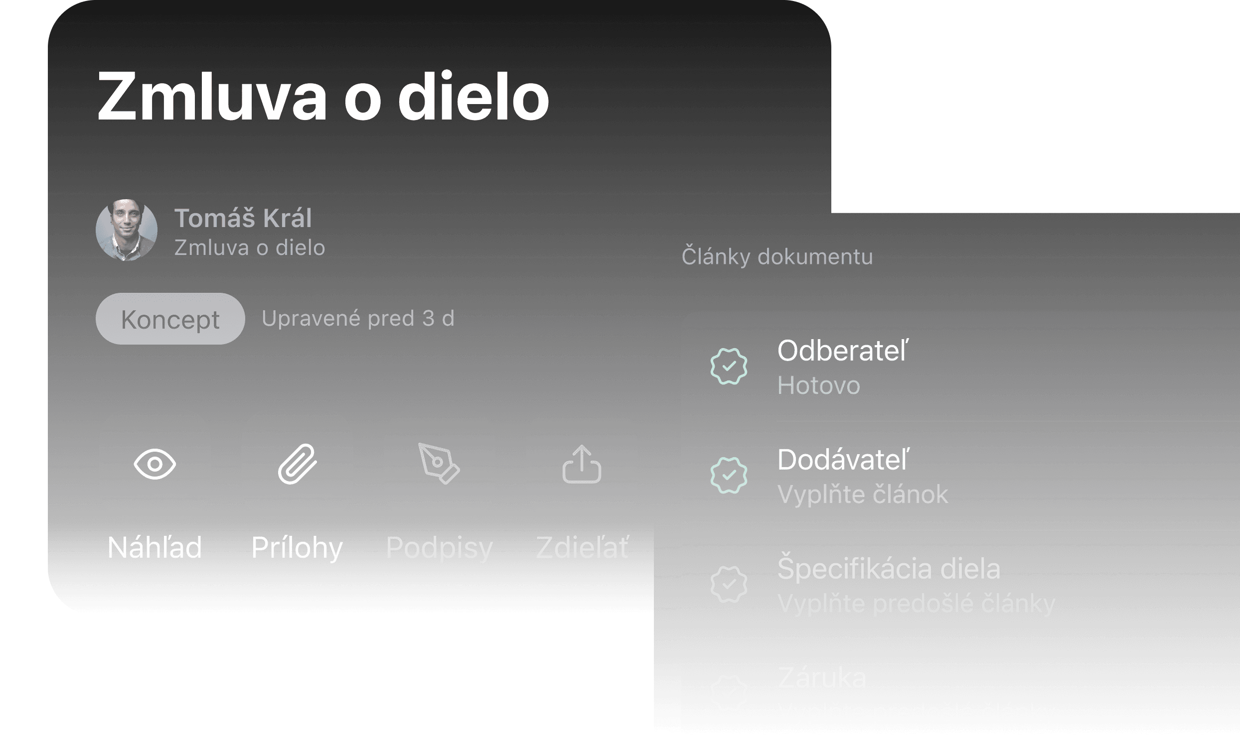 Zabudnite na tlač papiera, všetko vyriešite efektívne priamo v aplikácii. Navyše ušetríte finančné prostriedky za právnika, poplatky u notára, hodiny času a pomôžete planéte revolučným eko riešením.